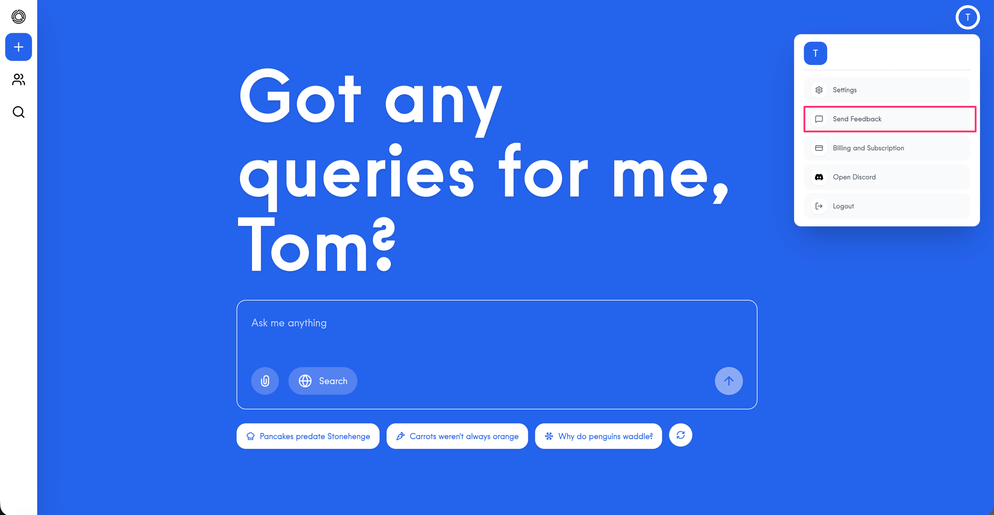 Sending us feedback is super simple. When you're next chatting with Locai, click on your avatar and select "Send Feedback" and use the drop down to report a bug, tell us about a feature you'd like to see or just drop us a line about anything else (within reason).