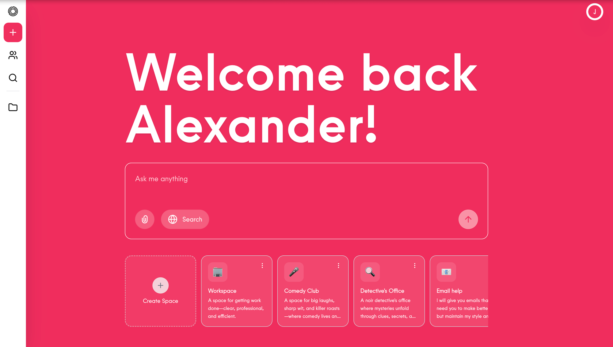 - Space Cards on Home Screen - Visual cards displaying your spaces with icons, descriptions, and chat counts for quick access