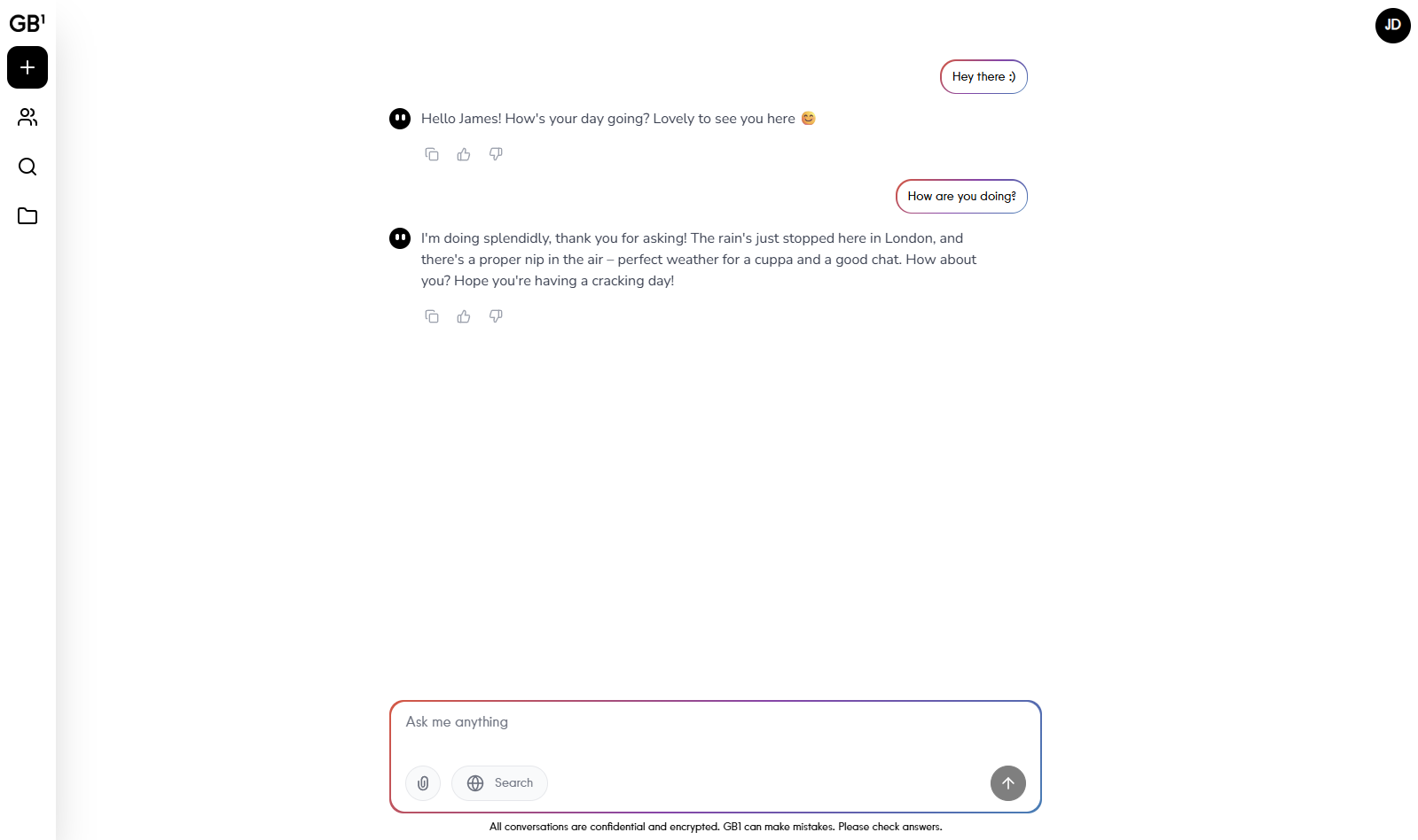 We are proud to introduce GB1, the new name, new look and next step in our journey. What was once Locai Chat is now GB1, with a refreshed brand identity, improved design and a clearer focus on what matters most: a smart, sustainable and user centred AI experience, built right here in the UK.